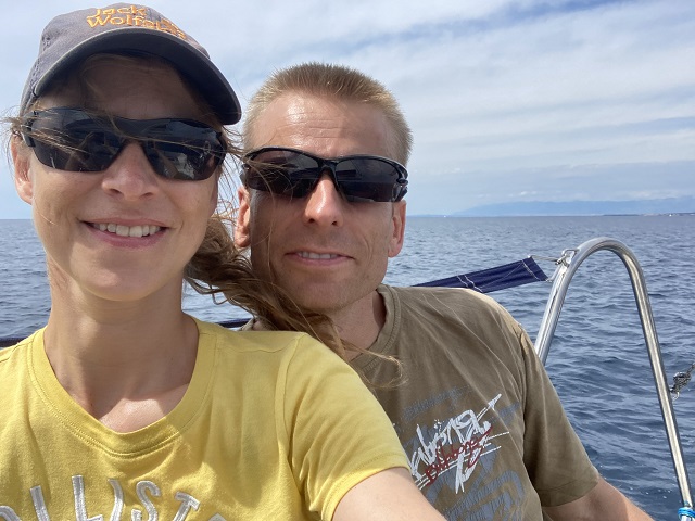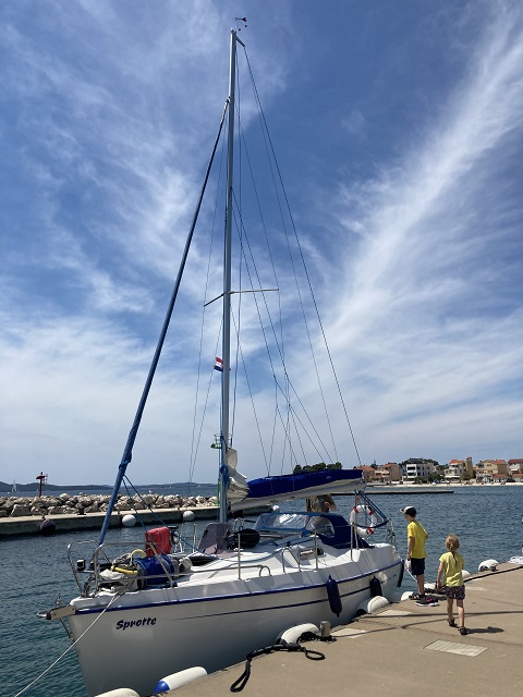Dann werden die Segel gesetzt und wir starten unsere erste Fahrt auf dem Mttelmeer mit eigenem Boot! 8-9 kn Halbwind, Kurs auf Ugljan.