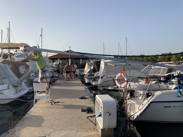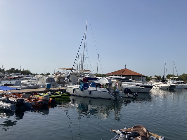 Da für Dienstag und Mittwoch sehr starker Wind mit über 8 Windstärken angesagt war, haben wir beschlossen, noch 2 weitere Nächte in der Marina Solaris zu bleiben. Immerhin liegt man hier sehr geschützt und für die Kinder gibt es auch jede Menge zu tun. Wir haben die Zeit für Reparatur- und Wartungsarbeiten und natürlich auch für ausgedehnte Poolbesuche genutzt.