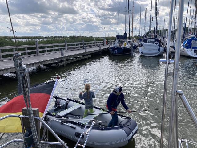Ziel war heute Enkhuizen, auf der anderen Seite des IJsselmeers, wo es für Kinder sehr schön sein soll. Die Überfahrt verlief bei ca 15kn raumen Wind sehr ruhig und wir konnten uns gut mit unserer Kumui einsegeln. Etwas mehr als 3 Stunden haben wir für die ca 20 sm gebraucht, mit Spitzengeschwindigkeiten von bis zu 8 kn. Nicht schlecht für den Anfang ;-) Zwischendurch kamen auch ein paar Regenschauer mit etwas mehr Wind durch, so dass wir auch noch einige Reffmanöver trainieren konnten, was auch sehr gut geklappt hat.