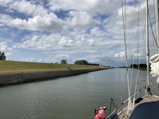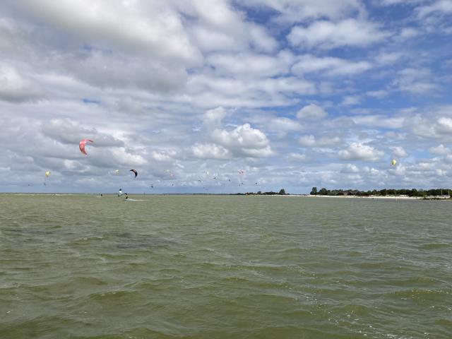 Gemütlich nach dem Frühstück in der Sonne sind wir heute aufgebrochen und haben den Rest des Weges durch Workum zugelegt. Kurz hinter Workum ging es dann hinaus aufs IJsselmeer und wir mussten feststellen, dass dieses in der Ausfahrt sehr flach ist. Nur ca 1m neben der Fahrrinne saßen wir plötzlich fest. Naja wir waren wohl ein wenig abgelenkt durch die vielen Kiter in dem Revier. Zum Glück konnten wir uns recht schnell wieder selbst befreien. Der Wind hat uns dabei auch unterstützt und uns netterweise in die Fahrrinne zurück gedrückt.