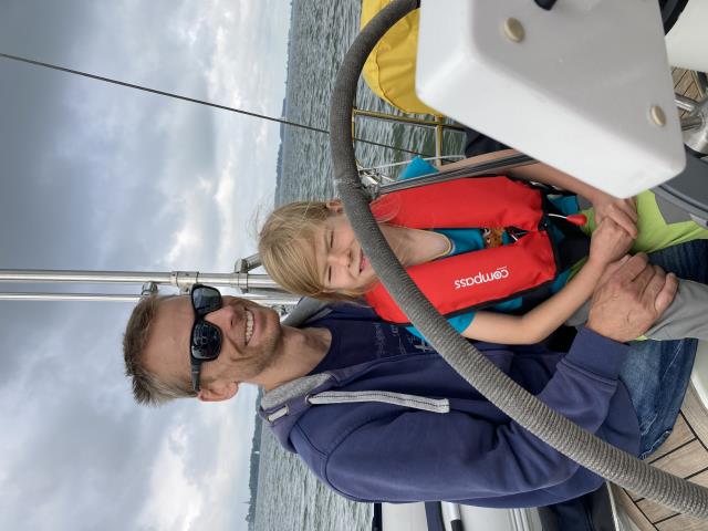 Start von Enkhuizen mit dem Autopiloten ;-) Aber die dunklen Wolken verfolgen uns trotzdem...