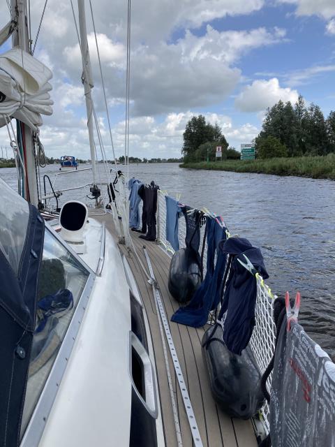 In Leeuwarden war es dann - der relativ späten Ankunftszeit geschuldet - schon ziemlich voll im Stadthafen und wir haben nur noch einen Liegeplatz in zweiter Reihe bekommen. Dafür aber neben einer netten holländischen Familie, die ebenfalls mit 2 Kindern auf einer Dehler 35 unterwegs sind. Passt doch :-)