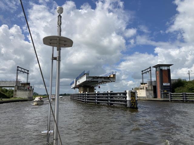 Nach einem gemütlichen Frühstück (und nachdem unsere Wäsche fertig war ;-) ging es weiter auf der Staande Mastroute bis nach Leeuwarden, welches wir am späten Nachmittag erreichten. Mit ca 30 km war dieser Streckenabschnitt gar nicht besonders lang, aber durch die vielen Brücken, an denen man jedes Mal warten muss, hat es sich doch ganz schön gezogen. 15 Brücken habe ich heute gezählt, wobei nicht auszuschließen ist, dass ich die eine oder andere verpasst habe...