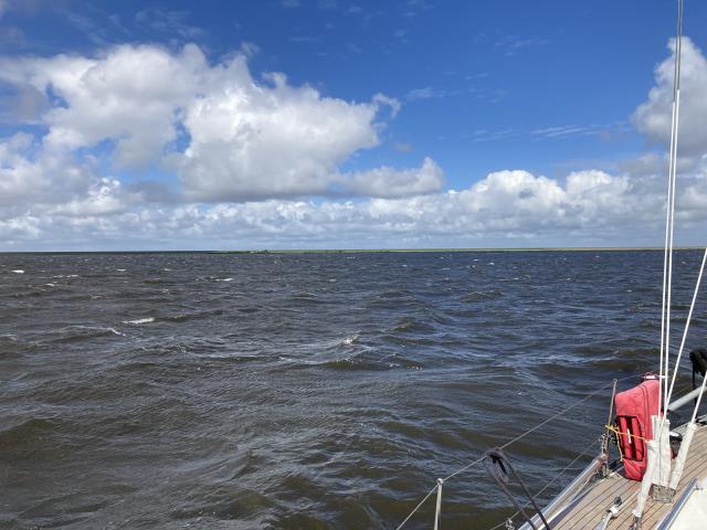 Ursprünglich wollten wir auf dem Lauwersmeer mal wieder etwas Segeln, aber mit den 7 Windstärken aus NW, also genau gegenan, und dem sehr engen Fahrwasser war es einfach so unbequem, dass wir die Strecke bis Lauwersoog dann doch unter Motor gefahren sind. Dort hat es uns dann aber so gut gefallen, dass wir spontan dort bleiben wollten. Also war es nur ein sehr kurzer Törn heute. Aber da wir ja sowieso erst am Freitag durch die kaputte Zugbrücke in Groningen kommen, haben wir ja auch noch etwas Zeit.