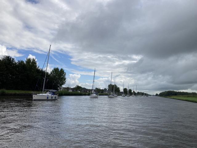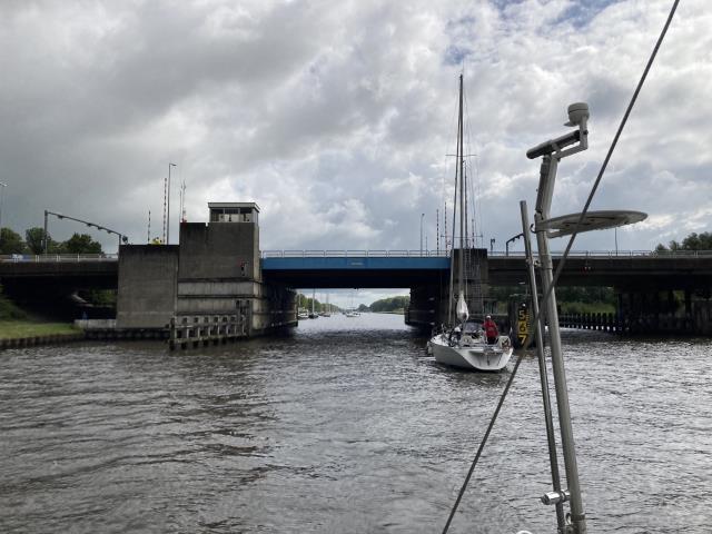 Heute morgen sind wir ja erst einmal planmäßig durch kaputte Driebondsbrücke in Groningen gefahren. Das wurde noch mal richtig spannend. Auf beiden Seiten hatten sich ca 30 Yachten eingefunden, die auf die wöchentliche Öffnung gewartet haben. Ab 10:30 Uhr sollte man sich bereit halten, um 11 Uhr sollte geöffnet werden. Kurz vor 11 kam ein kleines Behördenfahrzeug rausgefahren und wies alle Boote an sich steuerbordseitig anzuordnen. Über Funk wurden dann auch noch Anweisungen in deutsch, englisch und niederländisch durchgegeben. Alle Boote hintereinanander, dicht zusammen bleiben, zügig auf Steuerbord durchfahren. Durchfahrt für beide Seiten gleichzeitig. Die Brückenöffnung ist ein richtiges Großereignis, wofür eine stark befahrene Straße ziemlich lange gesperrt werden muss. Daher muss natürlich alles ziemlich zügig und reibungslos laufen. Trotzdem dauerte die Durchfahrt für alle Boote etwa eine halbe Stunde. Wir hatten Glück ganz vorne zu sein und sehr schnell durchzukommen.