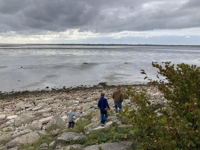 Das letzte Stück geht wieder mit dem Wind aber gegen den Strom. Man sieht den Strom an der grünen Tonne im Hintergrund.