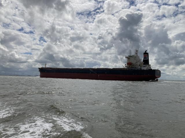 Draußen auf der Emsmündung. Die entgegenkommenden Schiffe werden größer...