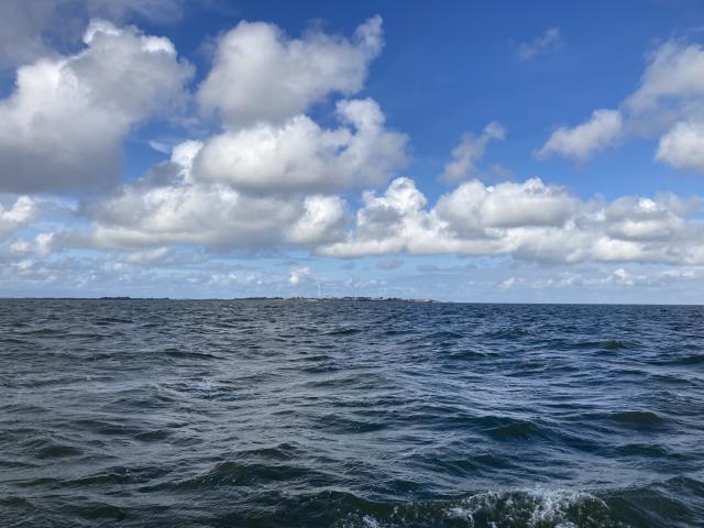 Nach ca 1,5 Stunden kommt langsam Borkum am Horizont in Sicht.