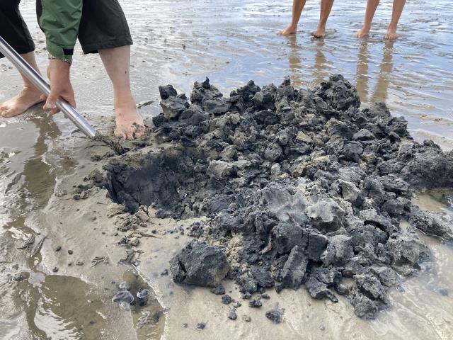 Auf der Suche nach Wattwürmern.