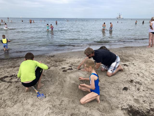 26 Grad und Sonne - perfektes Wetter für einen Tag am Strand... haben sich heute auch viele andere gedacht... Es war schwierig einen freien Platz am Wasser zu finden. Den Kindern hat's trotzdem gefallen. Morgen zieht es uns weiter...