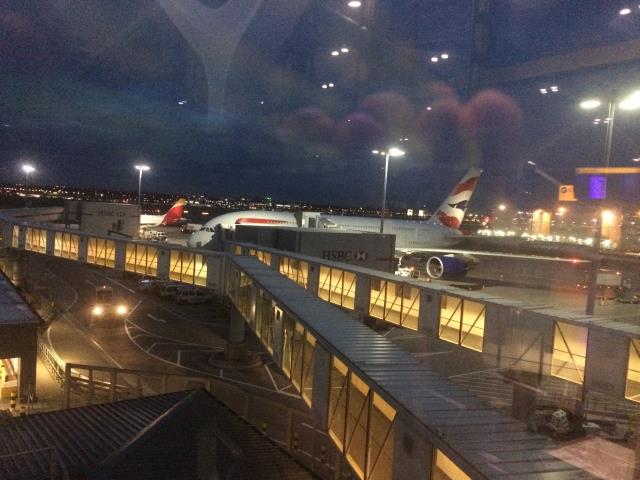 Auch in London klappt alles super und wir sind viel zu früh an unserem Gate für den Weiterflug. Im Hintergrund steht aber schon "unsere" Maschine - ein A380 :-)