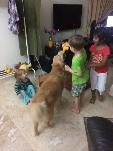 Wieder zu Hause angekommen, hatte sich die Kinderschar zur Freude aller vermehrt. Eine indische Familie mit Tochter genauso alt wie Aaron ist in das andere Gästezimmer gezogen. Das gab noch ein Gaudi am Abend. Toby hat's genossen.