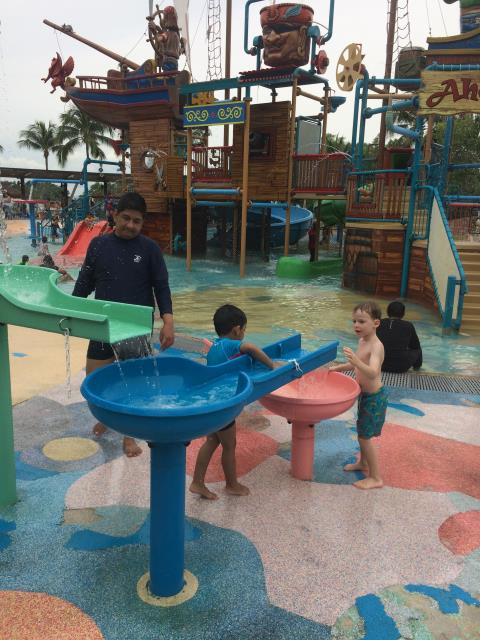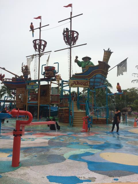 Der super-coole Wasser-Piraten-Spielplatz. Vorne rechts lässt sich auch der neueste Trend von Burkini entdecken ;-)