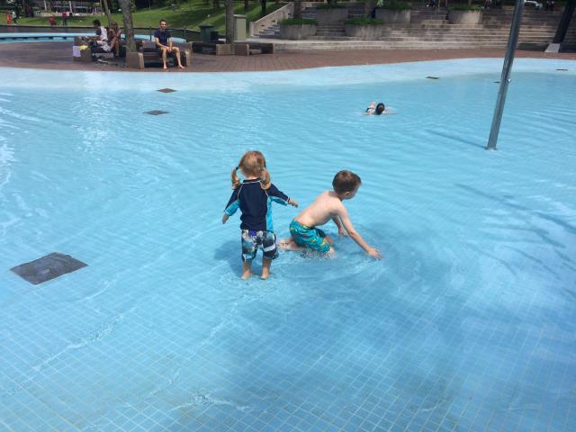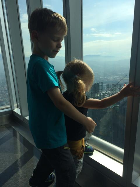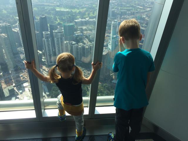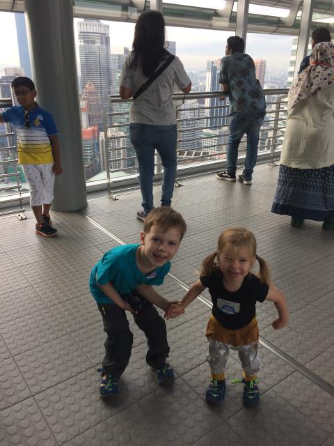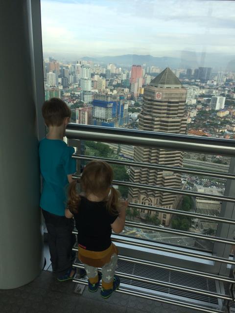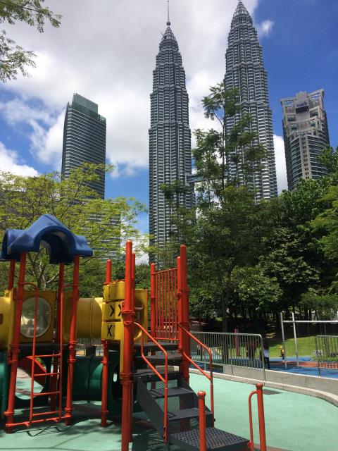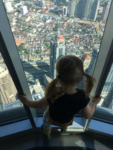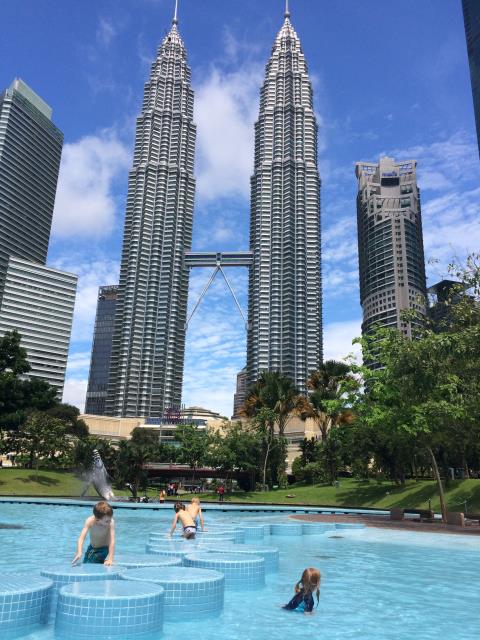 Aber ich bin trotzdem sehr froh, dass wir das gemacht haben, denn die Aussicht (bei Sonnenschein!) war wirklich spektakulär! Danach war ich sehr glücklich und entspannt :-) Und direkt hinter den Towers im KLCC Park wartete dann auch schon der Treat für die Kinder - ein weiterer Wasserspielplatz :-) Und direkt dahinter noch ein riesiger Abenteuer Spielplatz. Dort verbrachten wir dann auch den Rest des Tages. Und Abends, zurück in unserer Wohnung, sind wir dann noch in unseren tollen Pool mit Aussicht gesprungen. Das war ein wirklich gelungener Tag!