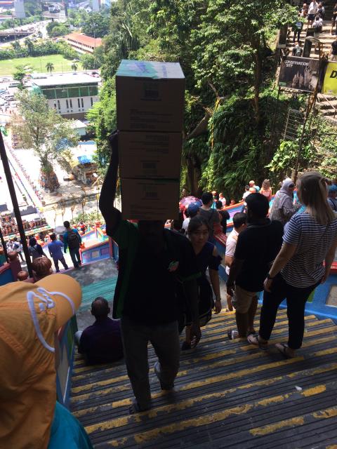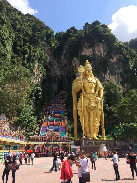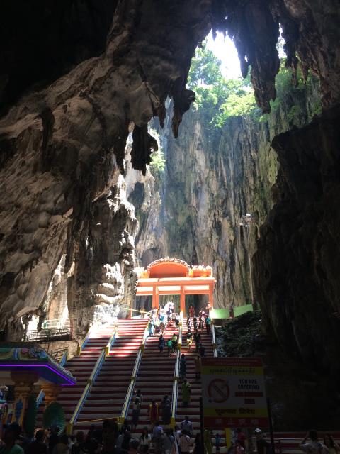 Den heutigen Morgen haben wir wieder ganz in Ruhe angehen lassen und nach Ausschlafen und ausgiebigem Frühstück haben wir uns am späten Vormittag auf den Weg zu den Batu Caves gemacht. Wir haben heute mal eine neue Art des Transports genutzt - die Grab App. Das ist noch mal günstiger als mit einem normalen Taxi. Hat auch super geklappt und für 18 Ringgit (also etwas weniger als 4€) hat uns der Fahrer bis zu dem Höhlentempel gefahren, der ca 13km nördlich der Stadt liegt.