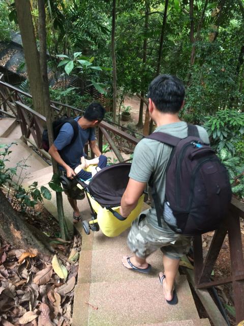 Oh Schreck! Am Ende des Parks führten nur Treppen zum Ausgang und Pauline war gerade im Buggy eingeschlafen. Zum Glück kamen gerade diese beiden Herren vorbei und haben den Buggy samt schlafender Pauline die Stufen runtergeschleppt. Und es waren viele Stufen... 😅