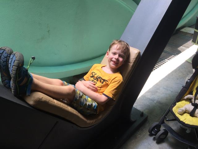 Aaron hat sich ein Souvenir aus dem Park mitgenommen 😀