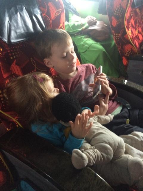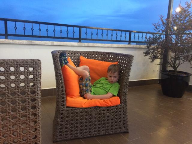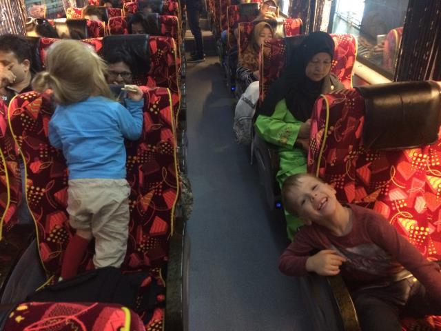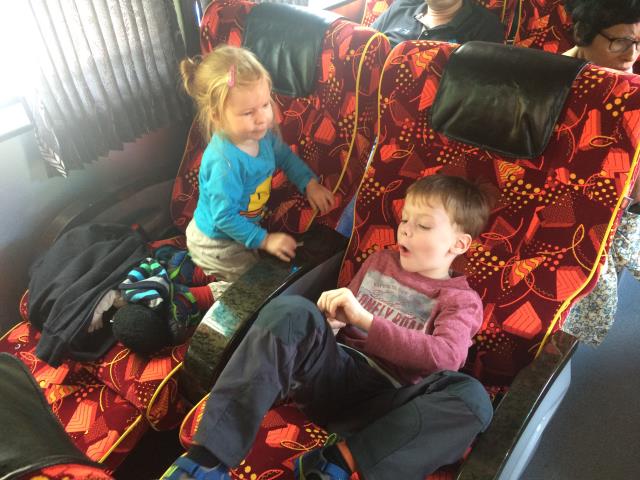 Der Preis für unsere Ruhe am Morgen war natürlich ein recht spätes Ankommen am Hotel. Die Busfahrt hatte gute 5 1/2 Stunden gedauert und Pauline hatte diesmal irgendwie nicht schlafen wollen und war entsprechend knautschig beim Ankommen. Ich bin auch fälschlicherweise davon ausgegangen, dass wir im Hotel Abendbrot essen können, was aber nicht der Fall war. Also mussten wir noch mal losziehen. Das erstbeste Restaurant, das wir finden konnten war ein Indisches. Als ich dort mit der greinenden Pauline ankam, kam sofort die nette Frau des Besitzers und hat uns Hühnchen für die Kinder gebracht - selbstverständlich aufs Haus :-) Das hat tatsächlich sofort die Laune der Kinder gehoben :-)) Ich habe dann noch eine Portion nachbestellt, die ich eigentlich bezahlen wollte, aber auch die ging aufs Haus... ;-) Für mich gabs Aloo Gobi mit Butter Naan - seeehr lecker und echt authentisch indisch :-) Ich glaube hier gehen wir morgen noch mal hin.