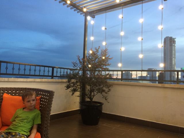 Unser Hotel hier ist wirklich sehr einfach mit wenig Charme. Aber dafür sind die Zimmer für hiesige Verhältnisse recht geräumig und sauber und es liegt sehr zentral. Und immerhin gibt es eine nette Dachterrasse im 11. Stock mit einem hübschen Blick auf die Stadt.