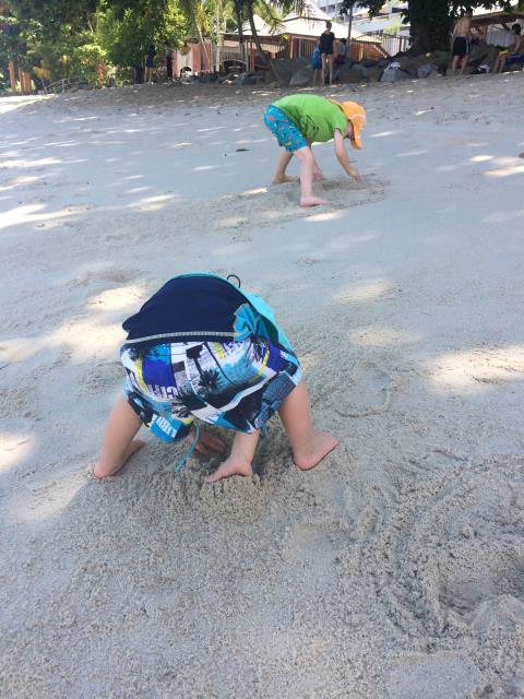 Auch heute hat es uns wieder aus der Stadt gezogen und wir sind nach Batu Ferringhi an den Strand gefahren. Wir waren gewarnt, dass dies nicht der beste Strand Malaysias ist. Es ist das Haupt-Wochenend-Ausflugsziel der Malayen und entsprechend viele Hotels wurden hier errichtet. Außerdem ist durch die Nähe der Stadt das Wasser auch nicht das sauberste. Aber dennoch ist dies der am einfachsten zu erreichende Strand - gerade mal 20 min mit dem Auto von Georgetown – und sooo schlecht war er nun auch nicht. Die Kinder jedenfalls waren sehr glücklich, sich am Strand austoben zu können und im Badewannen-warmen Wasser zu plantschen. Und da kein Wochenende war, waren auch nicht wirklich viele Menschen hier. Es hat uns einen kleinen Vorgeschmack auf Langkawi gegeben, wo wir das ganze hoffentlich mit noch etwas klarerem Wasser haben werden 😊