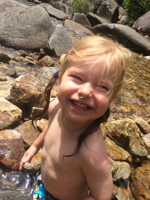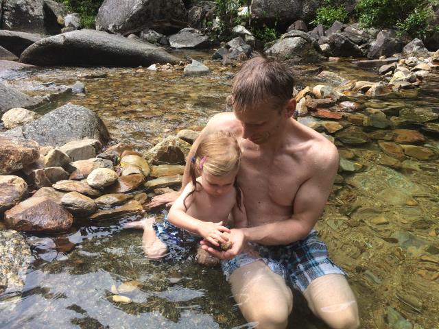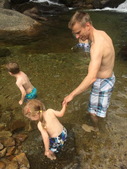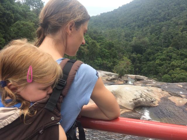 Am oberen Teil des Wasserfalls. Paulinchen ist mal wieder unterwegs eingeschlafen.