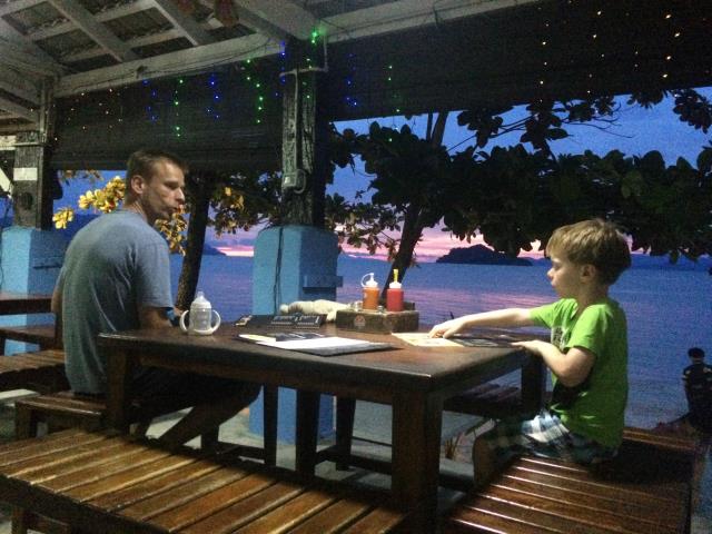 Heute haben wir uns von Hotel und Pool verabschiedet und sind in einen kleinen Strandbungalow am Tanjung Rhu Beach im Norden der Insel gezogen. Der Kontrast ist sehr groß. Der Süden der Insel, wo wir bisher waren, ist sehr touristisch mit guter Infrastruktur. In der Straße direkt hinter unserem Hotel gab es sehr viele Restaurants, Bars und kleine Läden, in denen man alles nötige (oder auch nicht) schnell besorgen konnte. Entsprechend viele Menschen waren dort auch immer unterwegs, was sich am Wochenende noch durch den Wochenendtourismus vom Festland steigerte. Das alles gibt es hier im Norden nicht. Keine Infrastruktur, gerade mal ein Restaurant fußläufig von unserer Bungalowanlage und zum Einkaufen muss man mit dem Auto irgendwo hinfahren. Dafür sind hier auch viel weniger Leute unterwegs, hauptsächlich einheimische Touristen und alles ist viel familiärer. Es gibt keinen Pool mehr, aber wir wohnen direkt am Strand und fallen quasi aus der Tür ins Meer. Abends kann man von der Veranda aus das Meer sehen und selbst vom Bett aus hört man es noch. Und während ich das hier noch schreibe, wurde Ilja schon von unseren Nachbarn zu einem Whiskey eingeladen :-) Auch wenn der Strand hier nicht ganz so breit und weiss ist, sind wir dem Paradies doch noch ein kleines Stückchen näher gekommen ;-)